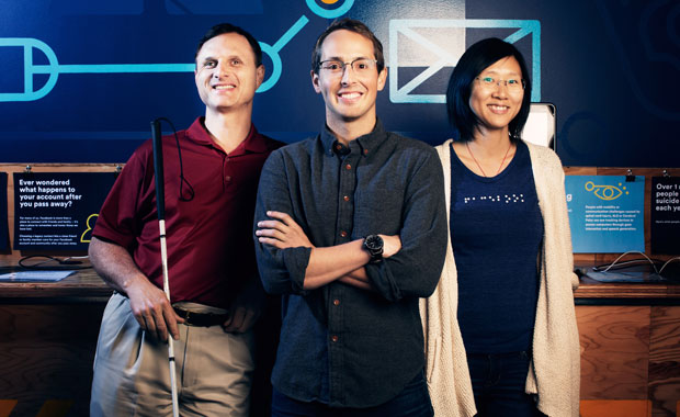 The goal is to help the blind community experience Facebook the same way others enjoy it, according to Facebook’s accessibility team, led by Matt King, Jeff Wieland and Shaomei Wu (pictured above).
