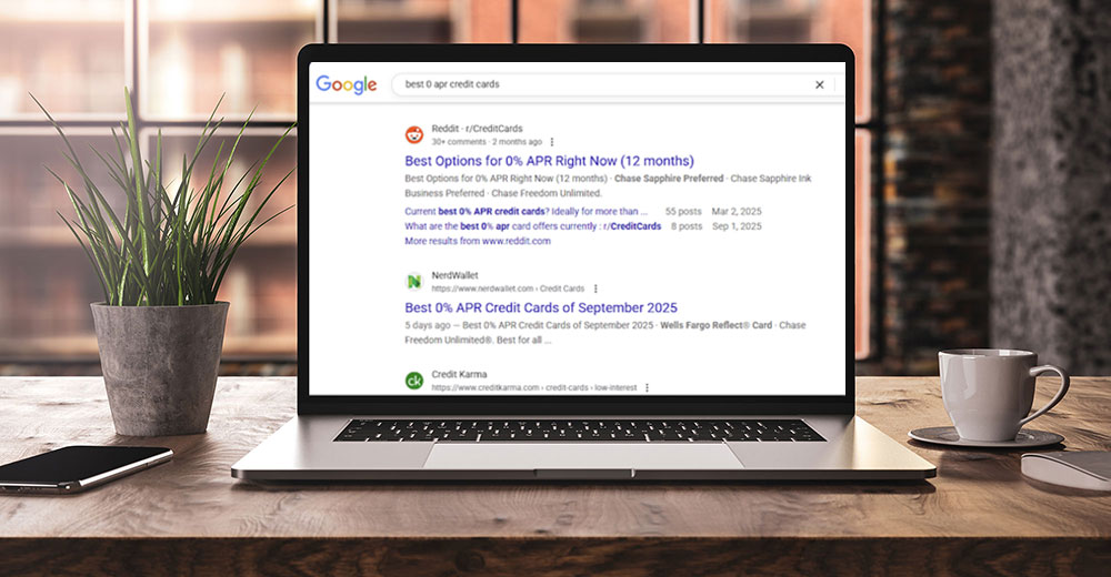 In its study, WalletHub did a Google search for “best 0 APR credit cards.” Here’s what it found: